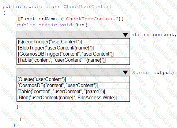 How should you complete the code? To answer, select the appropriate options in the answer area.