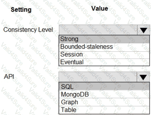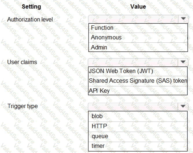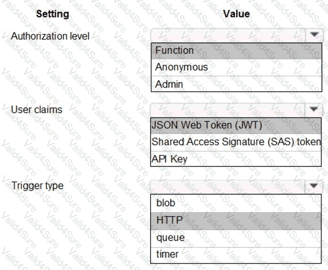 Which values should you use? To answer, select the appropriate options in the answer area.
