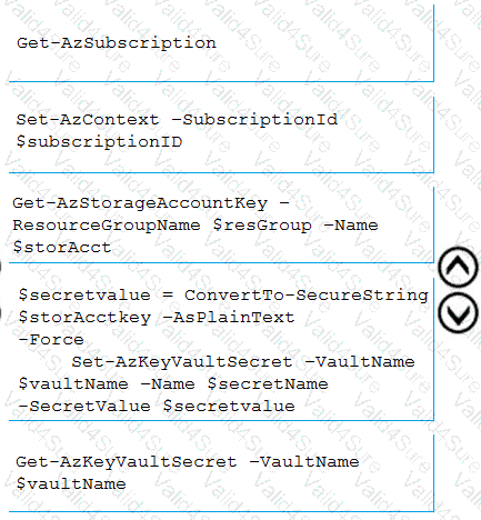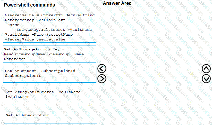 In which order should you arrange the PowerShell commands to develop the solution? To answer, move all commands from the list of commands to the answer area and arrange them in the correct order.