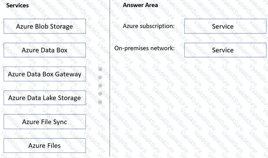 What should you deploy to the Azure subscription and the on-premises network? To answer, drag the appropriate services to the correct locations. Each service may be used once, more than once, or not at all. You may need to drag the split bar between panes or scroll to view content.