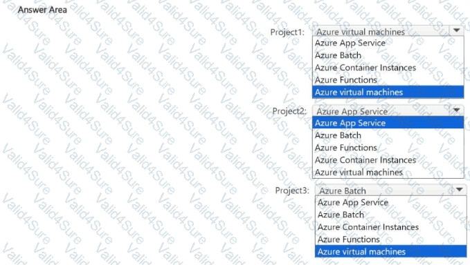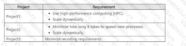 What should you include in the recommendation for each project? To answer, select the appropriate options in the answer area.