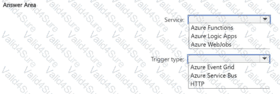 You need to recommend a service to host App2 and the type of trigger to use to call App2. The solution must minimize development effort.
