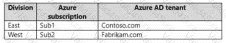 Sub1 contains an Azure App Service web app named App1. Appl uses Azure AD for single-tenant user authentication. Users from contoso.com can authenticate to App1.