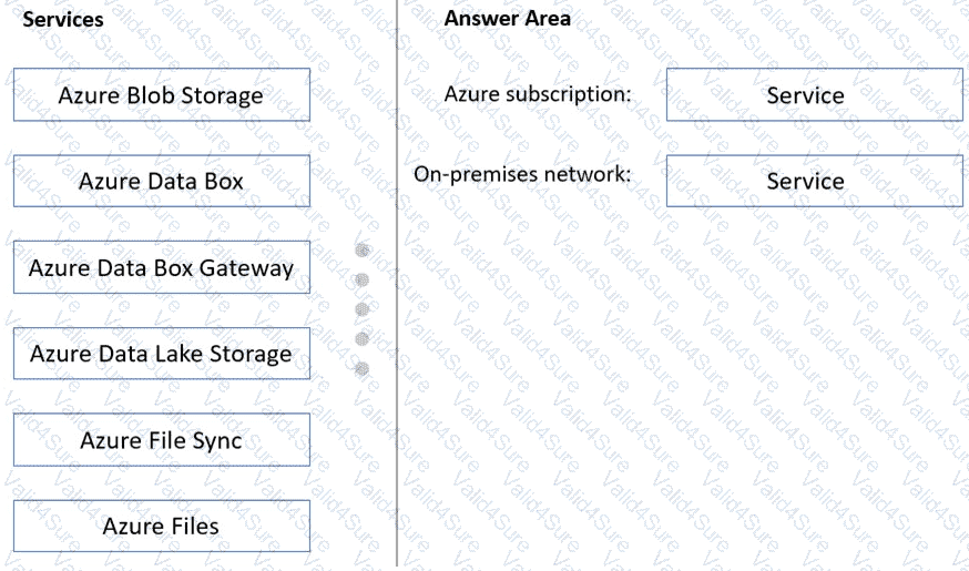 What should you deploy to the Azure subscription and the on-premises network? To answer, drag the appropriate services to the correct locations. Each service may be used once, more than once, or not at all. You may need to drag the split bar between panes or scroll to view content.