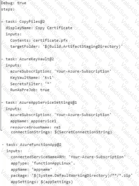 You need to prevent the user who performs the deployment from viewing the account credentials and connection strings used by the application.