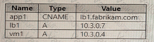 You have an Azure Private DNS zone named, fab rikam.com that contains the records shown in, the following table.