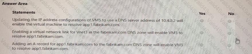 The virtual network links in the fabrikam.com DNS /one are configured as shown in the exhibit. (Click the Exhibit tab.)