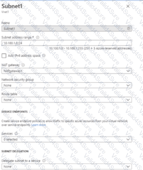 You have an Azure virtual network named Vnet1 that contains two subnets named Subnet1 and Subnet2. You have the NAT gateway shown in the NATgateway1 exhibit, (Click the NATgateway1 tab)