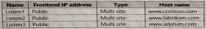 You have an Azure application gateway named AppGW1 that provides access to the following hosts: