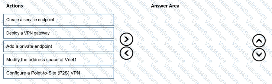 Which three actions should you perform in sequence before you can integrate WebApp1 and Vnet1? To answer, move the approp riate actions from the list of actions to the answer area and arrange them in the correct order.