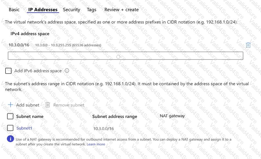 The IP Addresses settings for Vnet1 are configured as shown in the exhibit.