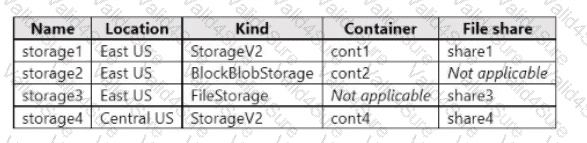 You have an Azure subscription that contains the storage accounts shown in the following table.