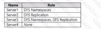 Your network contains an Active Directory Domain Services (AD DS) domain named contoso.com. The domain contains the servers shown in the following table.