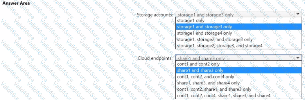 Which storage accounts can you use, and what can you specify as the cloud endpoints? To answer, select the appropriate options in the answer area.
