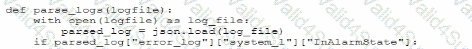 A security administrator needs to automate alerting. The server generates structured log files that need to be parsed to determine whether an alarm has been triggered Given the following code function: