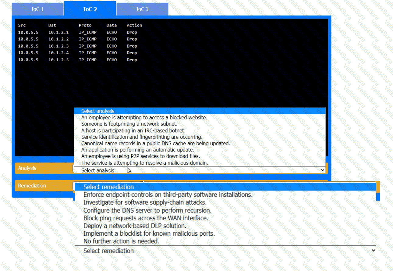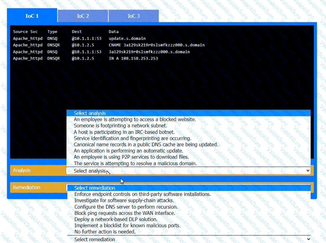 Review each of the events and select the appropriate analysis and remediation options for each IoC.