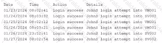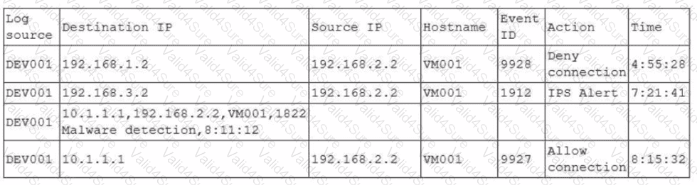 A security engineer receives an alert from the SIEM platform indicating a possible malicious action on the internal network. The engineer generates a report that outputs the logs associated with the incident: