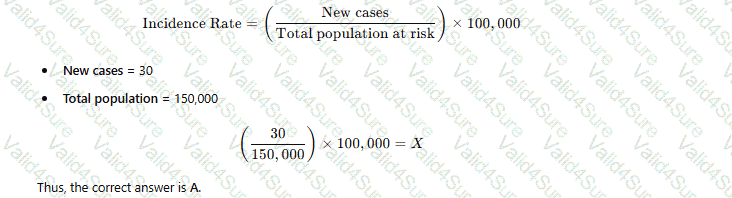 A city has a population of 150.000. Thirty new cases of tuberculosis (TB) were diagnosed in the city last year. These now cases brought the total number of active TB cases in the city last year to 115. Which of the following equations represents the incidence rate tor TB per 100.000 in that year?