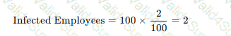 At a facility with 10.000 employees. 5,000 are at risk for bloodbome pathogen exposure. Over the past five years, 100 of the 250 needlestick injuries involved exposure to bloodborne pathogens, and 2% of exposed employees seroconverted. How many employees became infected?