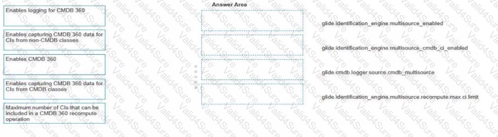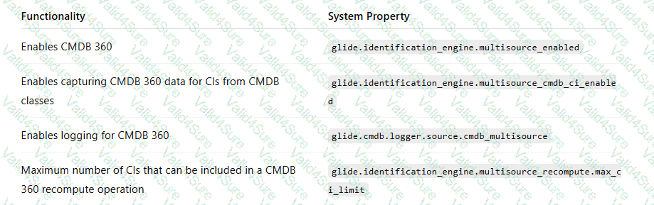A CMDB Administrator needs to set up CMDB 360/Multisource CMDB Drag and drop the system property to the functionality Some options may not apply.
