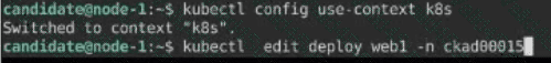 1- Update the Propertunel scaling configuration of the Deployment web1 in the ckad00015 namespace setting maxSurge to 2 and maxUnavailable to 59