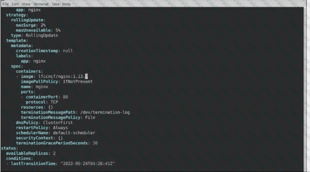 2- Update the web1 Deployment to use version tag 1.13.7 for the Ifconf/nginx container image.
