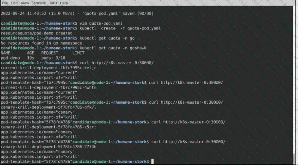 • Add an HAproxy container named haproxy bound to port 90 to the poller pod and deploy the enhanced pod. Use the image haproxy and inject the configuration located at /opt/KDMC00101/haproxy.cfg, with a ConfigMap named haproxy-config, mounted into the container so that haproxy.cfg is available at /usr/local/etc/haproxy/haproxy.cfg. Ensure that you update the args of the poller container to connect to localhost instead of nginxsvc so that the connection is correctly proxied to the new service endpoint. You must not modify the port of the endpoint in poller's args . The spec file used to create the initial poller pod is available in /opt/KDMC00101/poller.yaml