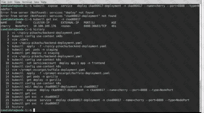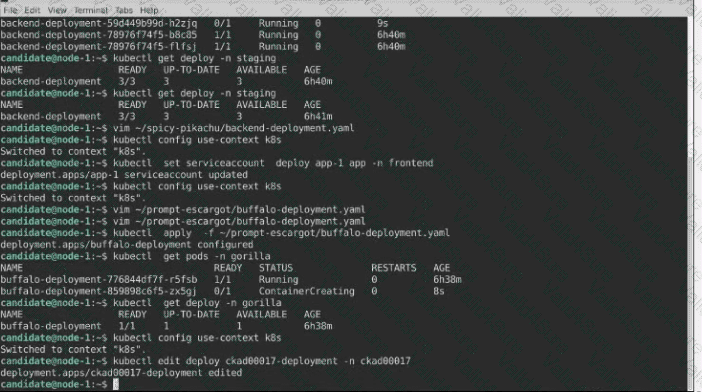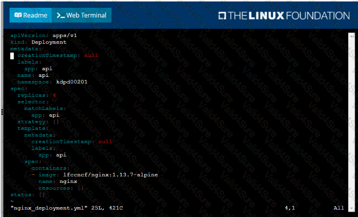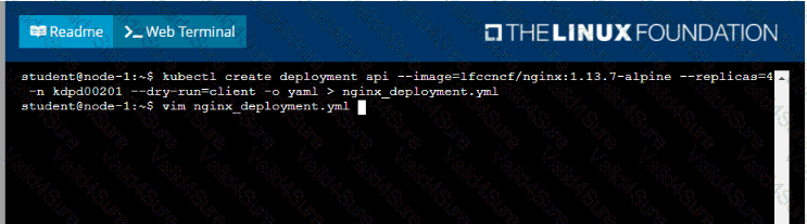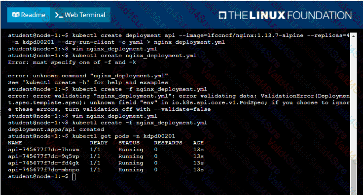 • Run the deployment in the kdpd00201 namespace. The namespace has already been created