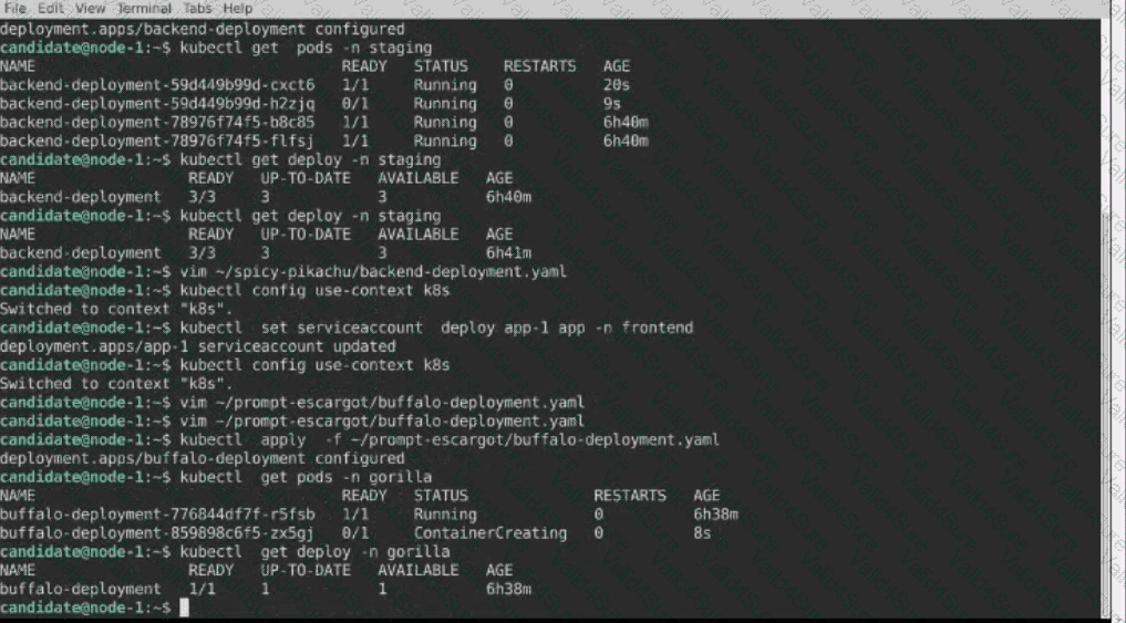 2) Update the Deployment buffalo-deployment to resolve the errors in the logs of the Pod.