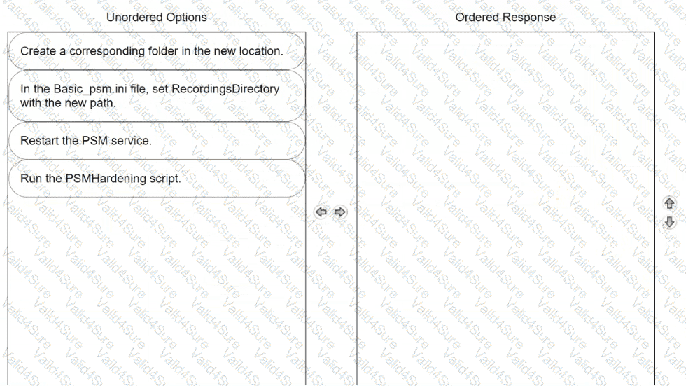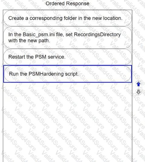You want to change the default PSM recordings folder path on the Privilege Cloud Connector Arrange the steps to accomplish this in the correct sequence.