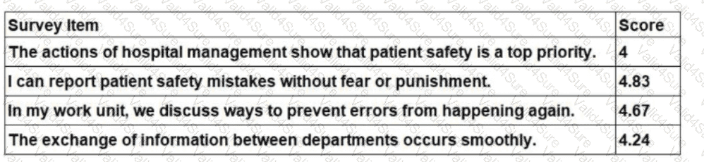 The culture of safety survey data below is collected from perioperative services. Which action should the healthcare quality professional recommend?