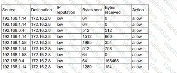 An analyst receives alerts that state the following traffic was identified on the perimeter network firewall: