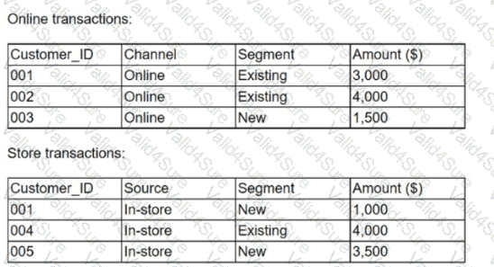 A marketing analytics team received customer transaction data from two different sources. The data is complete and accurate; however, the field names appear to be inconsistent. Given the following tables: