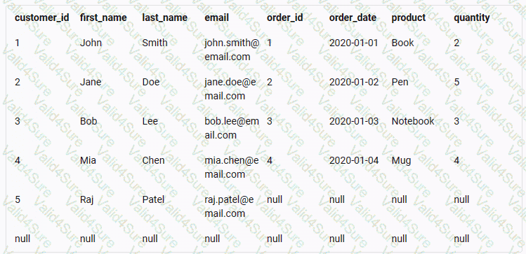 Which of the following describes the number of rows and columns of data that would be present after performing an INNER JOIN of the tables?