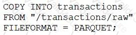 A data engineer runs a statement every day to copy the previous day’s sales into the table transactions. Each day’s sales are in their own file in the location "/transactions/raw".