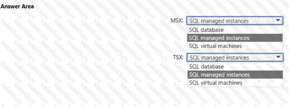 Which SQL deployment options should you select as the master server (MSX) and the target server (TSX)? To answer, select the appropriate options in the answer area.