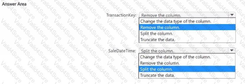 What should you do on each column? To answer, select the appropriate options in the answer area.
