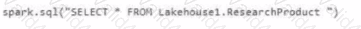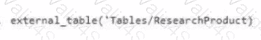 Which syntax should you use in a notebook to access the Research division data for Productlinel?