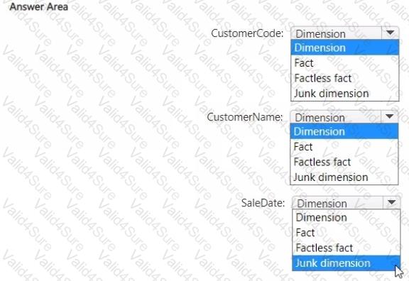 Which type of target table should you specify for the CustomerName, CustomerCode, and SaleDate fields? To answer, select the appropriate options in the answer area.