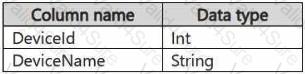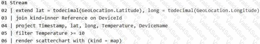 You have a KQL database that contains two tables named Stream and Reference. Stream contains streaming data in the following format.