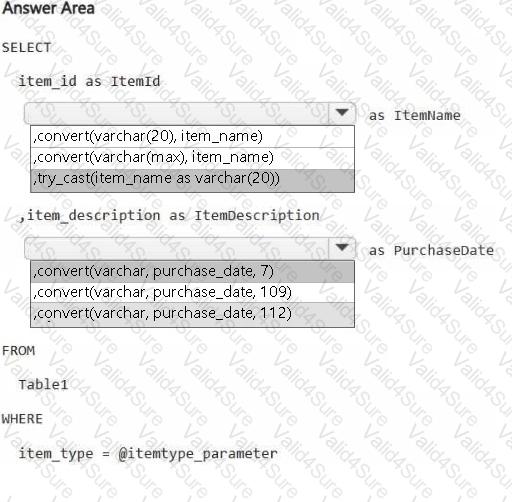 You have an on-premises Microsoft SQL Server database named Database1 that is accessed by using an on-premises data gateway.