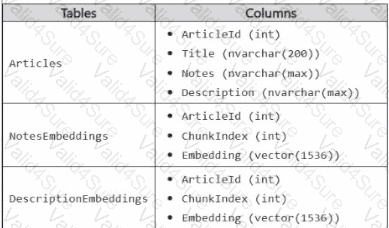 Embeddings in the NotesEnbeddings and DescriptionEabeddings tables have been generated from values in the Description and notes columns of the Articles table by using different chunk sizes.