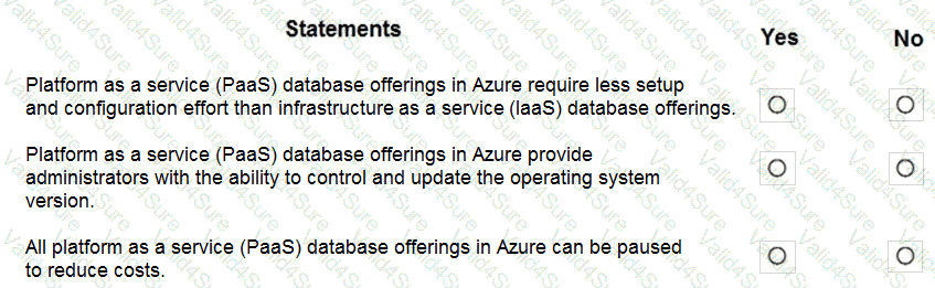 For each of the following statements, select Yes if the statement is true. Otherwise, select No.