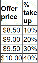 Research into different offer prices has given the following data with regards acceptance by the shareholders at different prices: