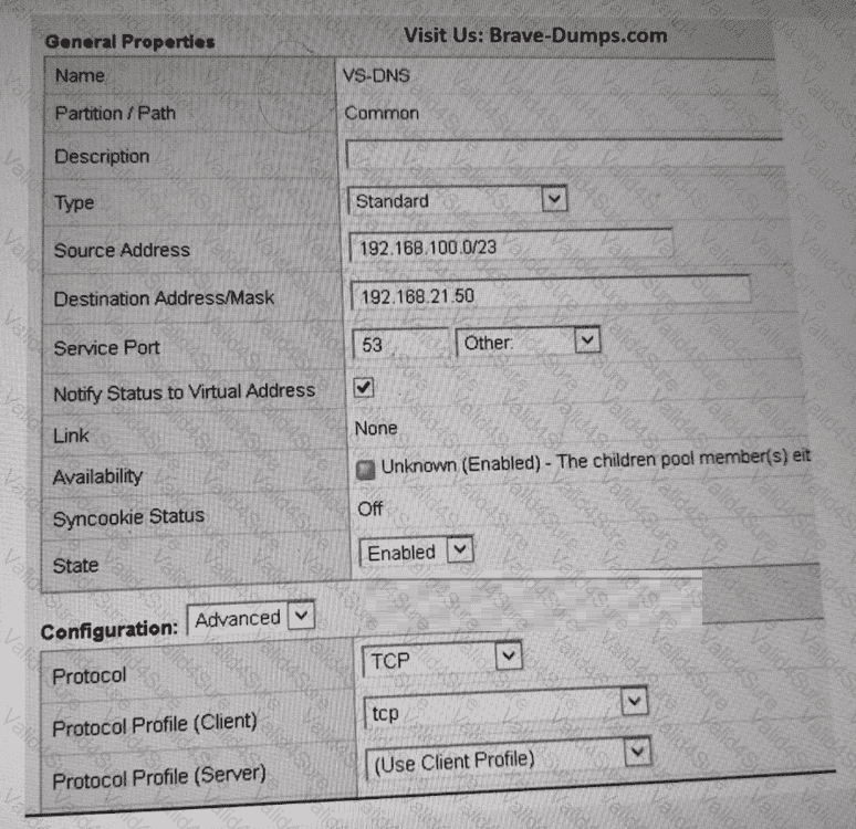 Which property change should the BIG-IP Administrator make in the Virtual Server to resolve this issue? (Choose one answer)