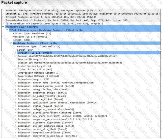 You are updating a firewall policy that includes SSL certificate inspection. You are capturing packets from the traffic passing through this firewall policy.