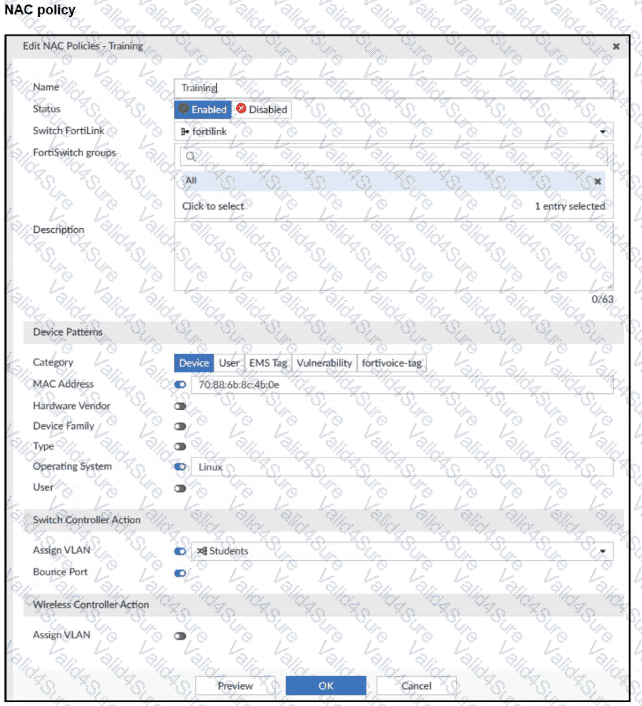 A NAC policy has been configured to apply traffic that flows through FortiSwitch port 2. Traffic that meets the NAC policy criteria will be assigned to the Students VLAN. However, the NAC policy does not seem to be taking effect.