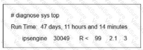 FortiGate is showing continuous high CPU usage During a maintenance window, the CLI command diagnose sys top displays the output shown in the exhibit. The CLI command diagnose twat application ipsmonitor 5 was run. but the CPU usage by daemon ipsengine did not drop Which immediate action can you take to reduce the CPU usage effectively?