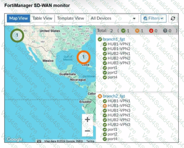 You applied the changes to the devices and want to use the FortiManager monitors menu to get a graphical view that shows the status of each SD-WAN member.
