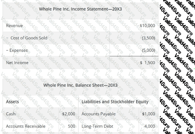 Use Whole Pine Inc.’s financial statements for 20X3 below to answer the following question.